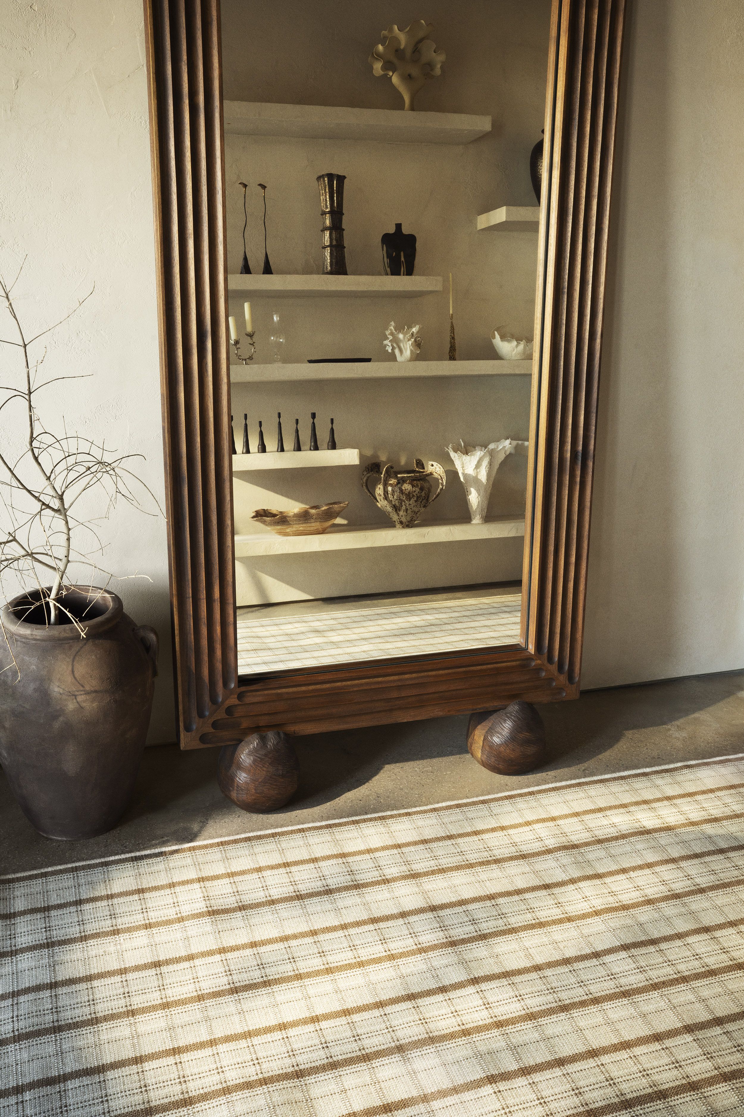 Why you’ll love it: Sawyer is a hand-loomed wool flatweave that combines durability with soft texture, making it ideal for everyday life. Its oversized plaid pattern adds subtle depth, while the warm, golden tone integrates effortlessly with a variety of color palettes.