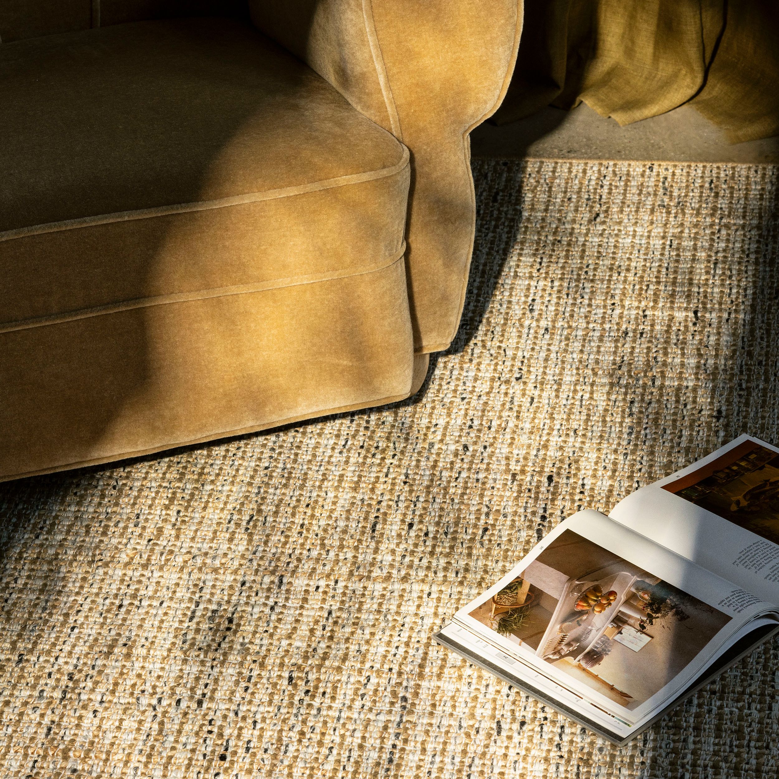 Contrasting blends: Weaves that combine wool with other natural fibers (keep your eye on jute) are gaining momentum. The interplay of soft and structured fibers create visual depth with striking contrast.