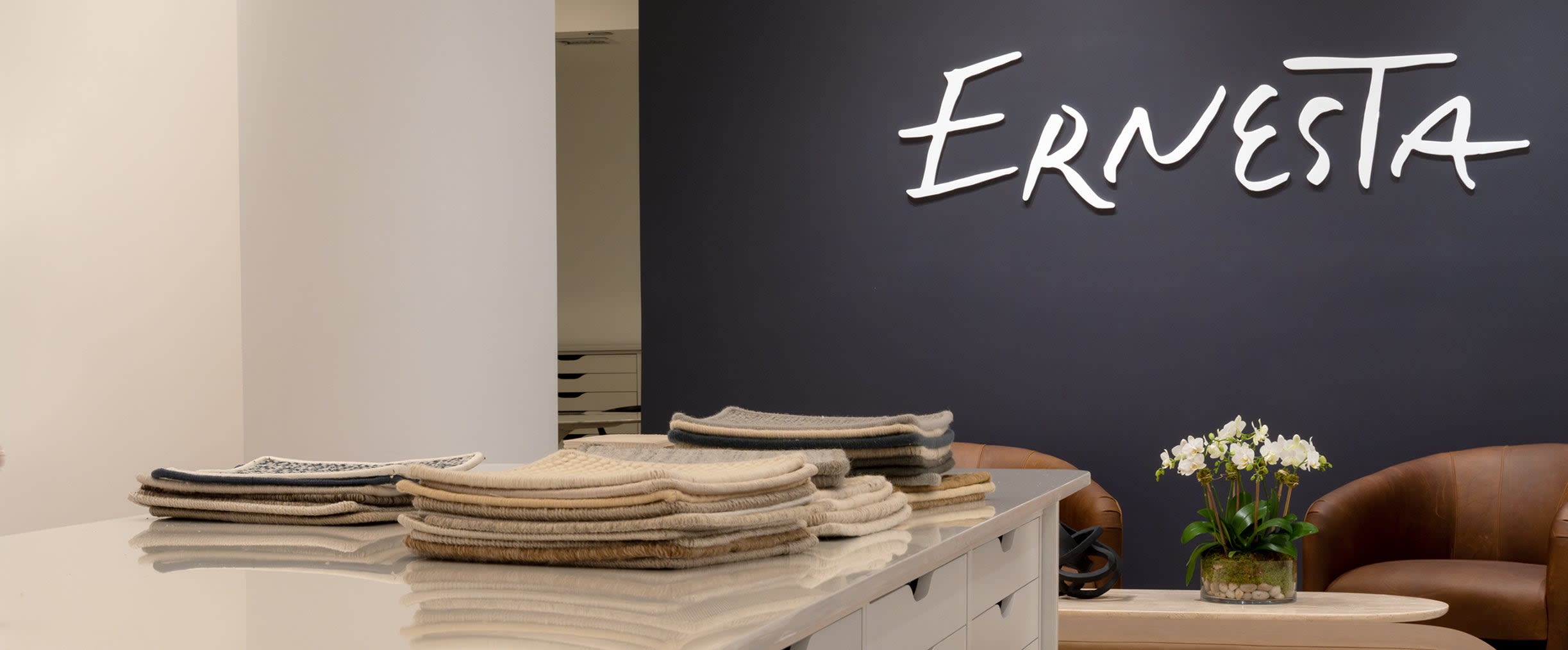 An intimate space reserved for private client 1:1s and interior planning alongside Ernesta's design experts.