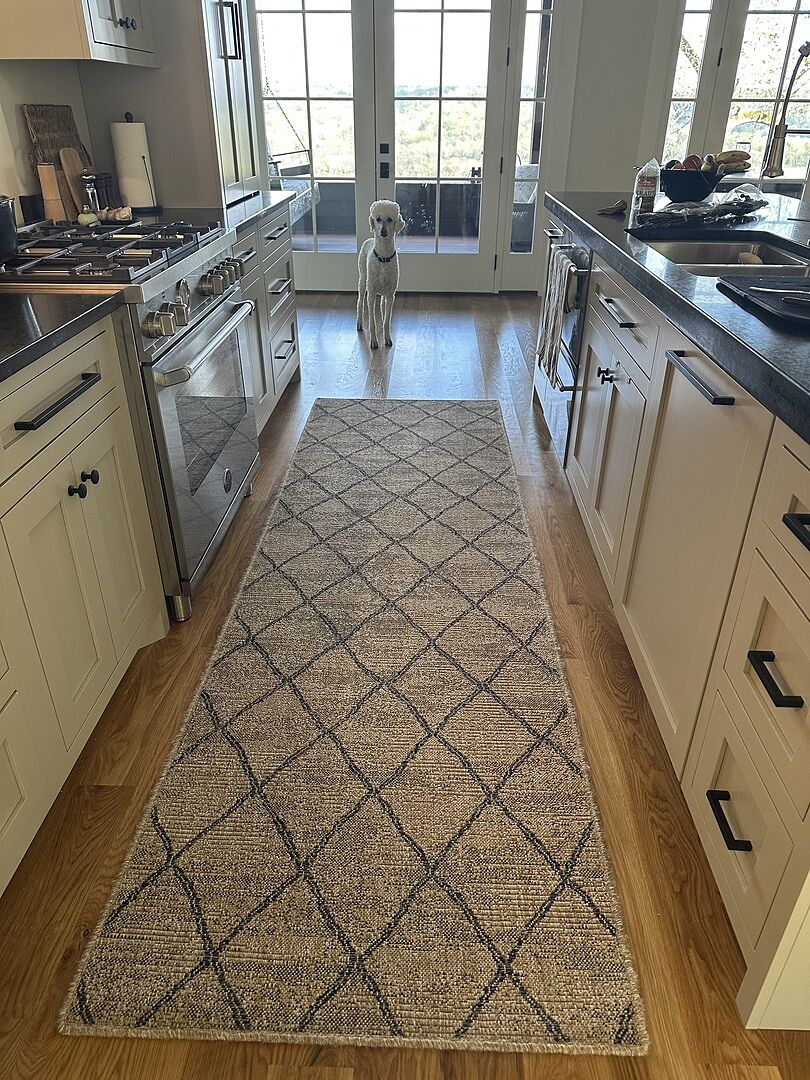 I ordered this rug in a 3 x 10 and it is perfect for our kitchen! I got the nonslip pad attached to it so I wouldn’t have to be readjusting it all the time. My husband dripped cranberry juice on the rug and it came out the next day easily with just a...
